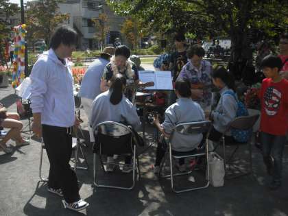 10月3日(土)は本校近くの小泉公園でふれあいフェスタが行われました。本校からもJRC部から20名のボランティアが参加しました。各ブースごとにお手伝いさせていただき、地域の方と一緒にフェスタを盛り上げました。(副校長)