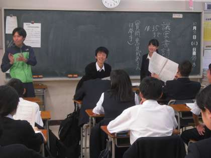 中間考査が終わり、各クラスでは10月16日の生徒総会にむけて議案書の討議をしています。専門委員さんが説明してクラスで活発にまた和気あいあいと話し合います。こうした活動がみんなの生徒会活動をささえる取り組みですね。(副校長)