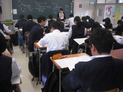 今日は第2土曜日で1、2時間目は授業です。昨日までの定期考査の結果が返却されています。3年生はとても真剣に先生の解説を聞きとっていました。今回の結果をもとに自分の取り組みを改善してさらにがんばっていきましょう。(副校長)