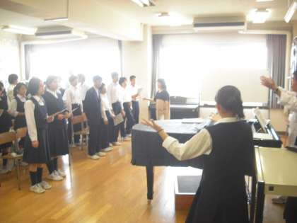 昼休み第1音楽室から歌声が響いています。合唱コンクール午後の文化発表の部の有志合唱の部の練習でした。豊かな声量で、当日がとてもたのしみですね。(副校長)