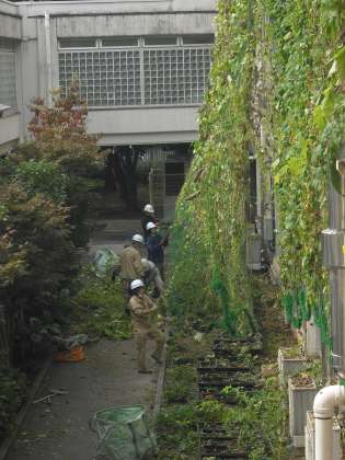 青々としていたみどりのカーテンも、だんだんと枯れ葉が目立ってきました。そして本日、いよいよ撤去となりました。校舎一面のカーテンなので、作業も1日がかりです。夏の間、ほんとうにお世話になりました。(副校長)