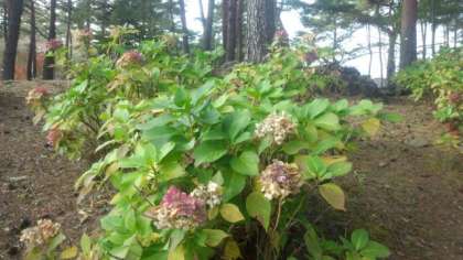 富士山ミュージアムを出発し、宿舎に向かいます。予定通り、みんな元気です。気温16℃、学級のシンボルマークのあじさいがまだ咲いています。