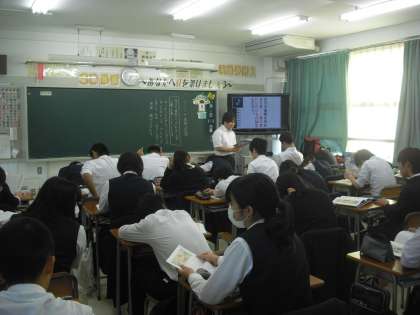 「アイツの進路選択」で進路を選択するためのことについて考えました。今みんなにとってもとても身近な話題ではないでしょうか。選択するためにはどのようなことをポイントにしていくのか、発表しあいました。(副校長)