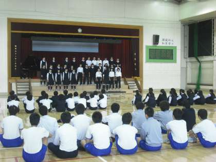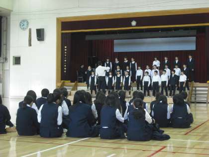 今日は、A組の縦割り練習です。どのクラスもしっかり声が出ていてよかったですよ。せいいっぱい歌う姿はとてもすてきなものです。各学年のよさを自分たちの発表に生かしてください。(副校長)