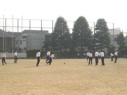 昼休み、校庭では男子がサッカーに熱中しています。よく動いて気分転換をしっかりやって、午後の授業もがんばりしょう。(副校長)