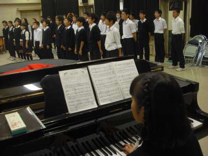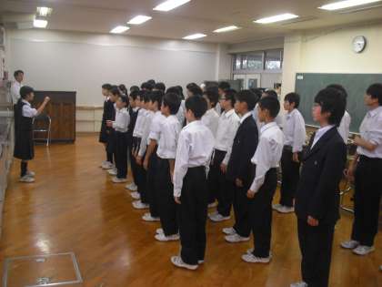 今日は1年生がピアノを使える場所でした。B組とC組は音楽室と多目的室です。合唱コンクール実行委員が中心に練習に取り組んでいます。姿勢などは全体がそろっていると、見ていても「すごいなあ」と思います。(副校長)