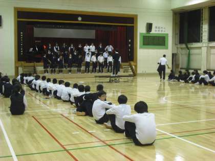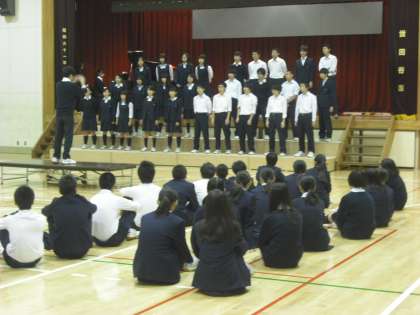 今日は、B組の縦割り練習です。体育館では3年生の合唱を1,2年生が真剣に聞く様子がとても印象的でした。自分たちも来年、再来年にこうした姿を見せられるとよいと思います。(副校長)