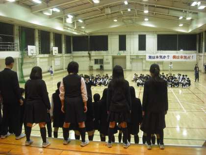 体育館は D組集合