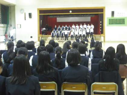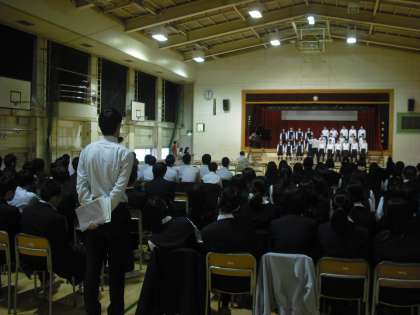 各クラスごとに、自由曲か課題曲でリハーサルを行いました。自分の発表だけでなく他人の発表を聞く姿も真剣そのものです。緊張感があり迫力ある姿を当日も楽しみにしています。(副校長)
