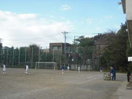 部活動の朝練習がまた始まっています。今日は校庭はサッカー部と野球部です。秋とはいえ、朝は寒くなってきました。タンチ山の桜の木の葉も色付き始めています。(副校長)