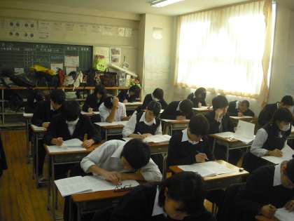 3年生は復習確認テストです。1時間目からテストに集中しています。2学期も後半でん。いよいよ3年間のまとめの時期になります。これまでのがんばりが実を結びますように。健闘を祈ります。(副校長)