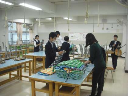 6時間目は校内作品展の準備中です。各教科係の生徒を中心に格技室や多目的室で展示の準備をしてくれていました。作品に名札をつけたり、きれいに並べたりと見やすく展示場所を準備してくれました。(副校長)