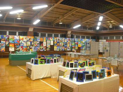 放課後の準備の時間を経て、展示もきれいに仕上がりました。、授業で一生懸命取り組んだ生徒作品が、とてもきれいに並んでいます。ぜひたくさんの参観をお待ちしております。(副校長)