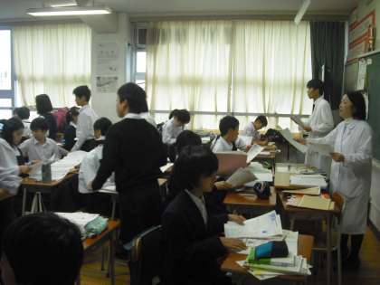 今日の6校時は定期考査前の最後の授業です。1年A組は理科の授業でした。プリントを中心にこれまでの学習のまとめです。これまでの学習をふり返り、期末考査に備えてください。(副校長)
