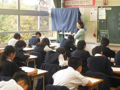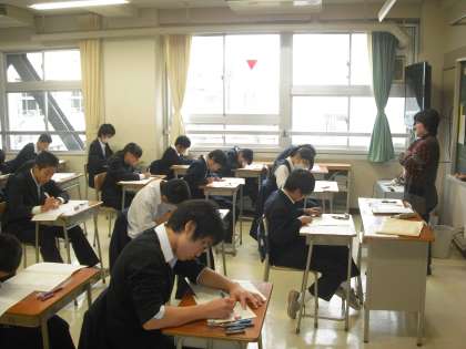 3日目の2時間目は数学のテストです。2年生も1年生も黙々と問題を解いています。問題に向かう姿は真剣そのものです。あと少し、最後までまでがんばってくださいね。(副校長)