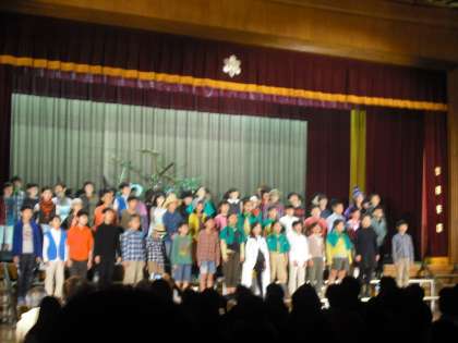 4年生の劇では、児童のみなさんがしっかり演じていました。そして参観の方々も巻き込み会場一体となって歌をうたいました。アットホームな感じがよく伝わる発表でした。(副校長)