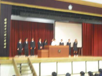 水曜日の朝は、生徒会朝礼です。今日は後期の各専門委員会からの報告がありました。各学年の様子や、委員会活動を通して日頃の学校生活がよくわかります。それはみんなが主体的に活動しているからこそですね。(副校長)