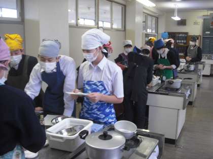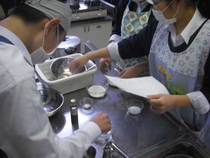 6時間目は調理実習です。3年生が白玉作りに挑戦しています。粉から手作りです。おいしいお菓子がつくれますように、各班がんばってくださいね。(副校長)