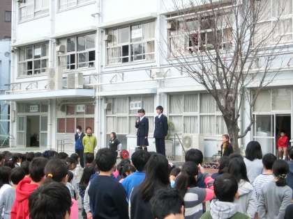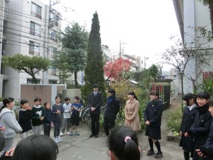 12月14日に生徒会本部役員は、あいさつ運動で三軒茶屋小学校へ出かけました。また朝礼で児童のみなさんに話をしました。学び舎全体で気持ちのよいあいさつを交わし合えるとよいですね。(副校長)