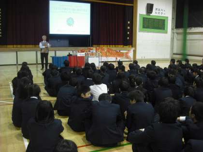 2年生の6時間目は、人権教育の一環として国際理解講演を行いました。今回はアジア教育友好協会の宍戸様にお越しいただき、ラオスの子どもたちの実情や学校のことについてお話しいただきました。世界の子どもたちについて考えを巡らす機会としてください。