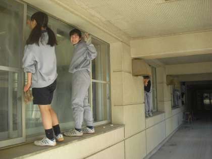 朝から聞こえていた音色が気が付くと止まっています。吹奏楽部は活動場所の大掃除をししています。来年もまた良いハーモニーを奏でられますように!