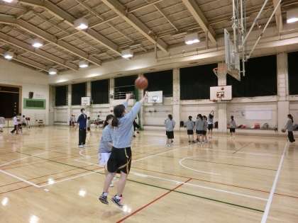 体育館では、朝からバスケットボール部が練習しています。1月末から始まる冬季大会に向けて、個人のスキルアップはもちろん、チームの総合力を向上させられるようにがんばっていきます。(遠藤)