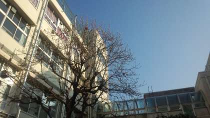 透き通るような青空、たいへん暖かい陽気です。たくさんの部活動が活動しています。新年からしっかりとあいさつができて、たいへん気持ちがいいですね。冬休みも今日を入れてあと3日となりました。