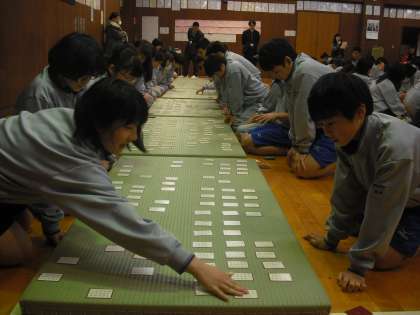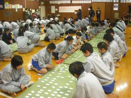 今日は2年生の百人一首大会です。学年の先生方が、一首ずつ読んでいきます。上の句で取り札を探している人もいましたね。自分の気に入っている札がとれると、気分がいいものですね。また保護者のみなさまご参観ありがとうございました。(副校長)