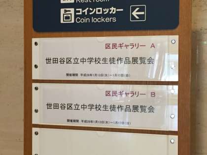 世田谷美術館の一階区民ギャラリーで世田谷区立中学校生徒作品展覧会を開催しています。日時は1月13日(水)〜17(日)、10時〜18時開催です。今日の午前中は展示の準備を区内の先生方でいたしました。本校からも書写・美術・技術・家庭科の作品が展示されております。ぜひご来観ください。(副校長)