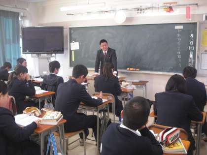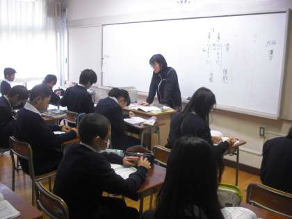 2年生の国語の授業では文法です。先生が解説してみんな落ち着いて聴いています。内容を理解したら問題で確認していきます。細かい点までしっかり理解できるよう、先生の話に耳を傾けていきましょう。静聴、黙考ですね。(副校長)