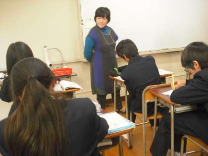 1年生は名詞についての学習です。名詞の種類について小西先生がていねいに解説していきます。「ここマークですよ。」「これは何名詞ですか。」という一言一言に、1年生もワークに書き込んだりして、落ち着いて授業に取り組んでいます。(副校長)