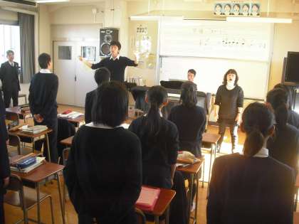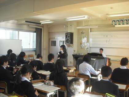 リコーダーの演奏です。二重奏のハーモニーを奏でることができるでしょうか。まずは主旋律をしっかり奏でることが大切ですね。立川先生と小林先生の2人の指導で二重奏まで演奏できました。合奏も合唱も集中して合わせて1つのハーモニーになりますね。(副校長)