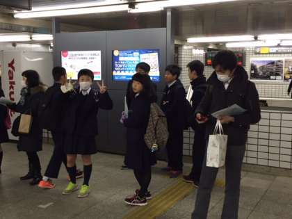 「おはようございます。「「行ってらっしゃい」駒沢大学駅にみんな集まってきています。これから班行動です。いざ鎌倉へ(水田)