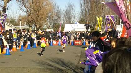 快晴の味の素スタジアム、女子の部です。世田谷チームには、駒沢中学校から男女1名ずつ出場しています。女子は現在13位です。がんばってください。(副校長)