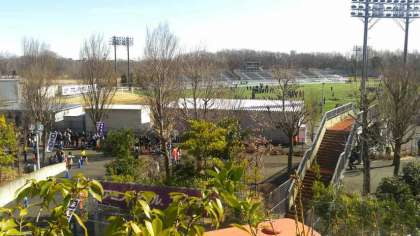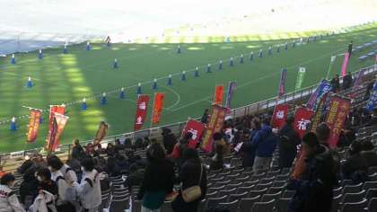 男子は練習中です。スタジアムは各校、各地区からたくさんの応援です。みんながんばっています。(副校長)