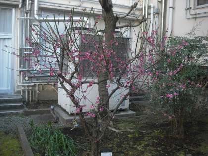 中庭にある梅の花が満開となっていました。ハナミズキのつぼみも開きはじめました。ここ数日の暖かかったり寒かったりの影響もあったのでしょうね。あと春まで少しですね。中庭では季節が感じられます。(副校長)