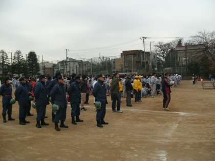 地域合同防災訓練の開会式で、校長先生からは「おはようございます。東日本大震災から5年が経ちます。恐怖や不安を忘れないように、訓練に当たって、2つの格言を覚えてください。「天災は忘れた頃にやってくる」「備えあれば憂いなし」」とご挨拶いただきました。(副校長)