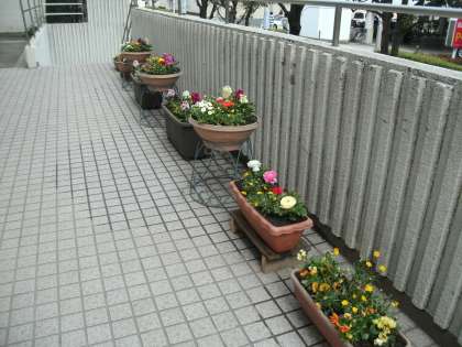 主事さん方も今日の訓練に参加していただきました。自転車の整理や物品の対応などさまざまにご活躍ありがとうございましたまた、先週とどいた花もプランターに移し替えていただきました。本日も正門で、来校のみなさまをお出迎えしています。 (副校長)