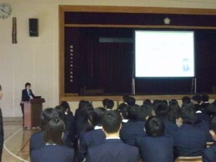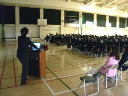 3年生は、法に関する教育として、弁護士の方に来ていただき講演していただたきました。雇用や働いている上での損害賠償などのお話しでした。アルバイトもみんなにとって身近になってくることでしょう。今日の講演の内容についても考えて、社会生活をおくっていきましょう。(副校長)