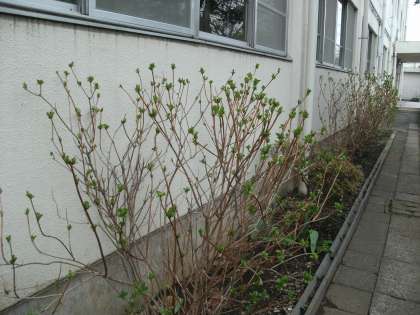 校庭の木々も、芽吹き始めています。あじさい学級の通りの紫陽花は新緑が一斉に芽吹き始めました。また、桜のつぼみも小さな緑をのぞかせ始めました。もうすぐ花が咲きますね。春の訪れが感じられます。(副校長)