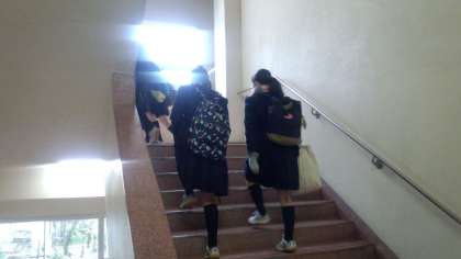 今日の朝は中央階段で教室に向かう生徒たちとあいさつを交わしました。気持ちのいいあいさつがたくさん返ってきましたね。今日も一日がんばりましょう。