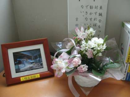 今日は、保護者会です。どうぞよろしくお願いいたします。校内では、季節の彩りでお花をご寄贈いただきました、ありかとうこざいます。ぜひご来校の際には、校長室前のスライドショーと一緒にごらんください。(副校長)