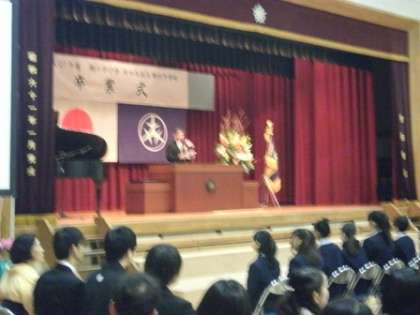 『春の訪れ。沸き立つようなうれしさと、別れの時のさびしさが去来します。一三二名の卒業生の皆さん、ご卒業おめでとうございます。本校の教職員と在校生を代表して、心からお祝いを申し上げます。