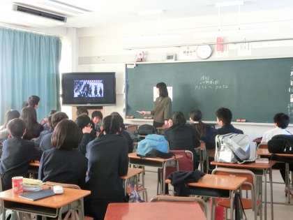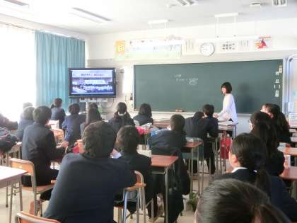 どちらのクラスもスライドショーで1年間を振り返っていました。(遠藤)