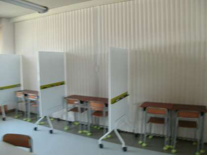 学習室のアコーディオンカーテンが設置されました。冷暖房も完備で個別学習に効果を発揮することでしょう。窓から目をむけると、視聴覚室前のベランダは色とりどりの鉢植えが。ますます駒沢中学校はいろどりが豊かになりますね。(副校長)