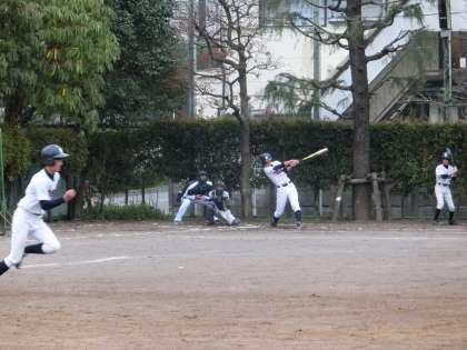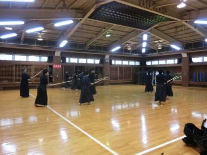 校庭では、野球部が練習試合をしています。格技室では、剣道部が稽古、体育館では、バスケットボール部が練習しています。