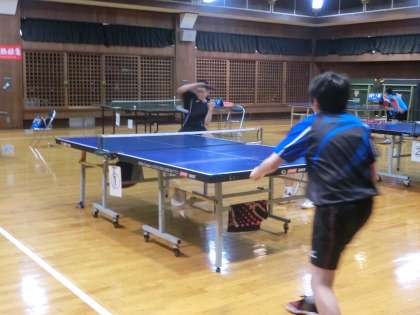 格技室では卓球部が部内戦の続きをやっています。部内ランキングが上がるようにがんばれ!(遠藤)