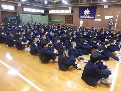 3年生の学年集会のようすです。各先生方から、最上級生として責任と誇りをもつこと、進路選択に向けての準備を進めること、修学旅行についてなどのお話をいただきました。卒業までがんばっていきましょう。(田村)