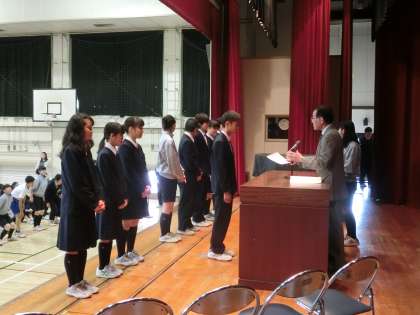 任命式がありました。各専門委員会の委員長が代表で、校長先生から任命証を受け取りました。専門委員会は、学校全体にかかわる大切な仕事です。責任をもって取り組んでください。(遠藤)