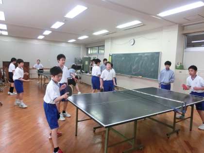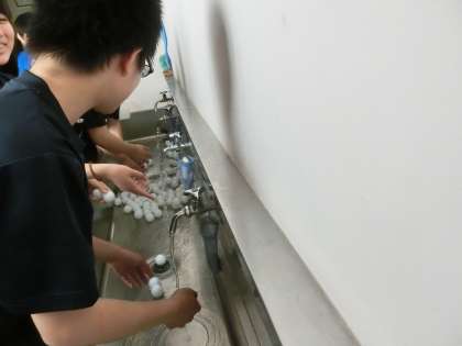 卓球部は、新しいボールを準備していました。1度きれいに水で洗い、よく拭いてから使います。格技室では2,3年生、多目的室では1年生が練習していました。(遠藤)